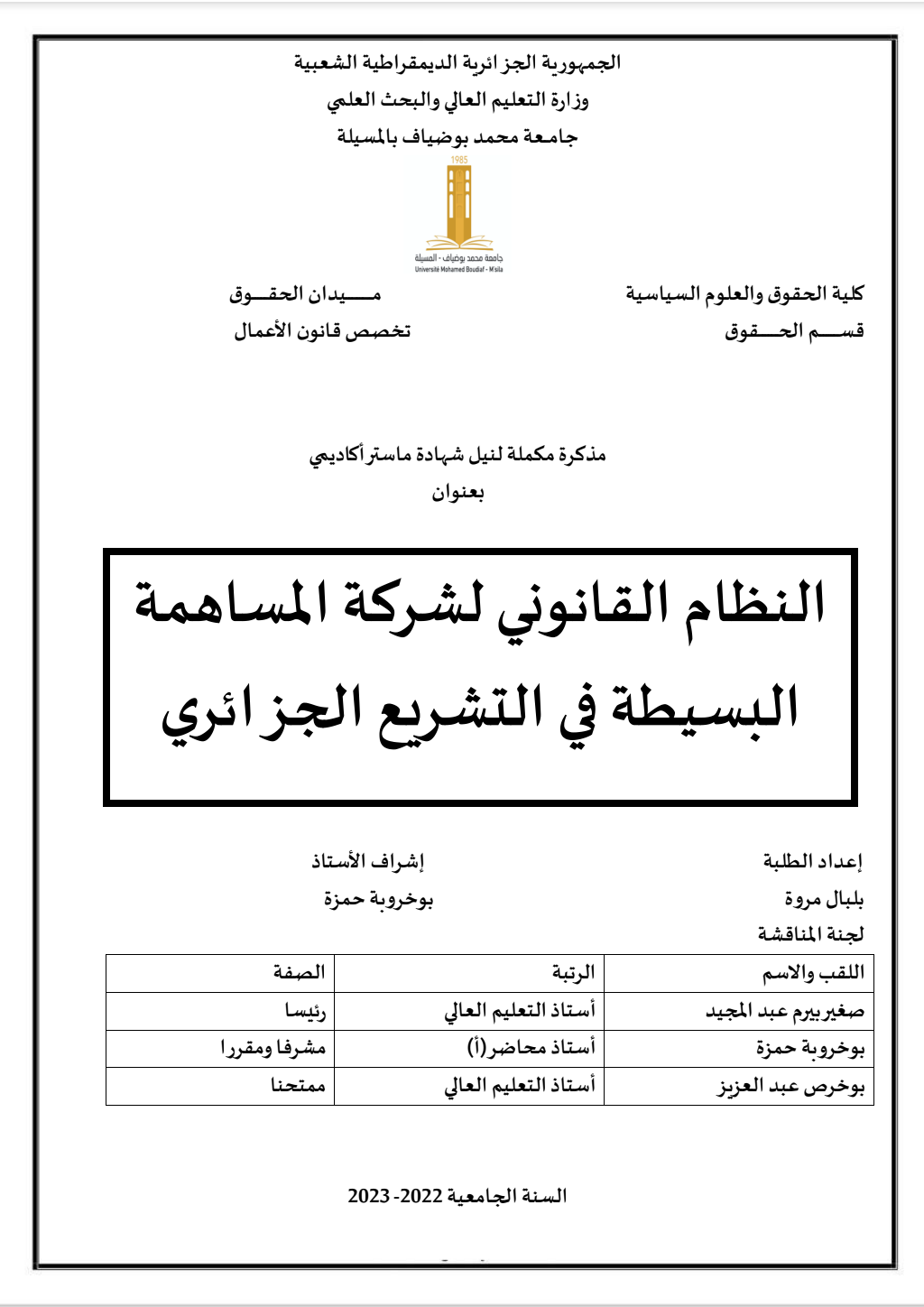 مشابه : النظام القانوني لشركة المساهمة البسيطة في التشريع الجزائري – مذكرة